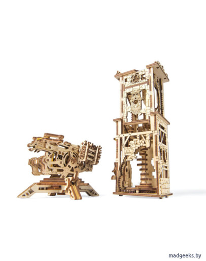 UGears известны своими невероятными 3D-пазлами из натурального дерева, которые не оставляют равнодушными ни взрослых, ни детей. Новая модель от UGears – башня-аркбаллиста, вдохновленная лучшими примерами древней артиллерии в литературе и художественных фильмах. Этот пазл состоит из двух частей: осадная машина и механическая башня. С помощью модели можно практиковать точность прицеливания: сама баллиста стреляет деревянными болтами. Детальное воспроизведение классики военных машин поможет почувствовать себя настоящим завоевателем империй.