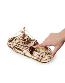 После открытия коробки с конструктором UGears можно сразу приступить к процессу сборки: все детали уже готовы и не требуют специальных инструментов или навыков. Каждая из моделей конструкторов UGears подвижна! Натяжение специальной резинки в моторе приводит в движение колеса с ассиметричными осями, и буксир начинает «плыть» по поверхности стола или пола, будто покачиваясь на волнах! Это впечатление закрепляется почти настоящим звуком дизельного мотора – искусная имитация, созданная производителем.
