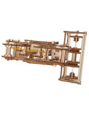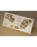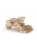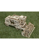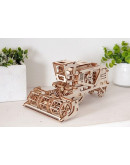 Модель выполнена в узнаваемом стиле UGears, в котором корпус максимально открывает внутренний механизм для любования. Колеса выполнены в виде шестерней, молотильный барабан аналогичен оригинальному (только вместо лезвий – зубочистки).