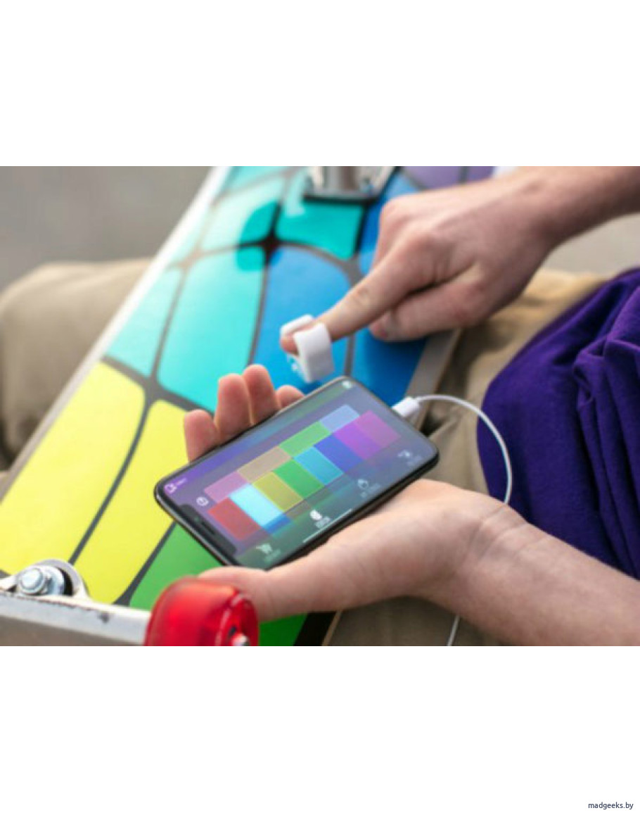 - Определяет цвет и проигрывает музыкальную ноту через смартфон
