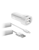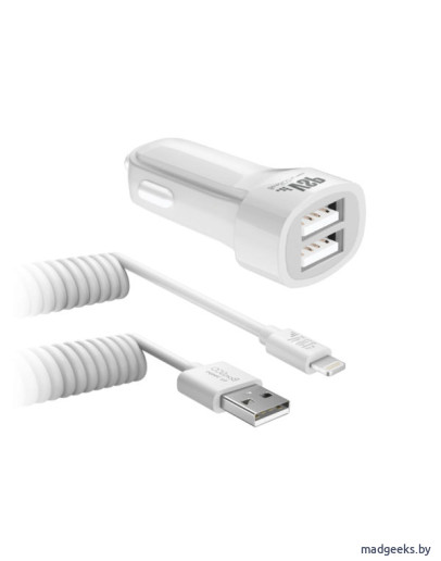 Устройство для одновременной зарядки двух гаджетов от сети автомобиля. В комплекте — витой дата-кабель 8 pin. Совместимо с планшетами, смартфонами и другими девайсами с функцией заряда USB.