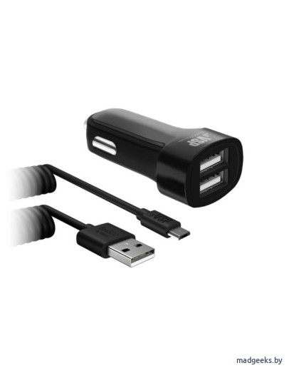 Устройство для одновременной зарядки двух гаджетов от сети автомобиля. В комплекте — витой дата-кабель microUSB. Совместимо с планшетами, смартфонами и другими девайсами с функцией заряда USB.