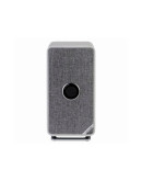 Особенностью Ruark Audio MRx является её комплектация. Вы можете использовать колонку, поставив её на стол или полку, однако производитель включил в комплект поставки прочное крепление на стену. Динамики закрыты грилем серого цвета, посередине расположена кнопка включения и управления громкостью. Интерфейс для проводного подключения производитель поместил на заднюю панель устройства.
