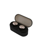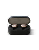 Cowon CF2 выполнены в оригинальном дизайне: они имеют овальную форму, благодаря чему надежно сидят в ушах. Внешняя часть окрашена в золотистый цвет. Наушники полностью беспроводные (True wireless) и обеспечивают пользователю полную свободу движений.
