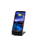 Зарядное устройство имеет форму подставки, позволяя разместить смартфон удобным образом. Такой дизайн подходит для расположения зарядки на рабочем столе в офисе, на прикроватной тумбе. Оповещения всегда будут видны, и вы сможете продолжить использовать телефон с комфортом.