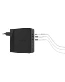 Представляет собой устройство 3 в 1. Адаптер подходит для подключения в различных странах, что возможно благодаря пяти насадкам. Также на устройстве располагаются порты для подключения USB.