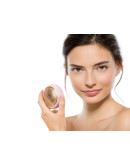 Foreo UFO выполнен в форме компактного низкого цилиндра. Корпус устройства изготовлен из антибактериального материала – силикона. На нижней части расположены основные элементы для ухода за кожей. Здесь находится пластина термообработки и криоухода, LED-лампа, средство пульсации. Кнопка включения и разъём для зарядки расположены на торце. Верхняя часть украшена логотипом производителя.