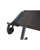 Каркас стола выполнен из алюминиевого сплава. Ножки имеют форму буквы Z: они не мешают пользователю и при этом сохраняют устойчивость стола. Особенностью модели является RGB подсветка, которая добавляет столу не только функциональности, но и делает его оригинальной частью интерьера.