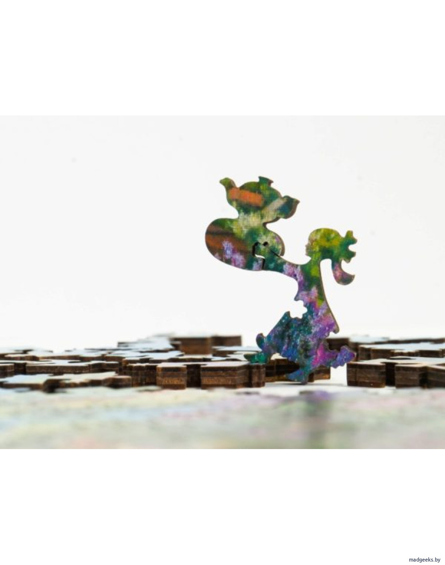 Пазл состоит из 160 деталей, прост в сборке. Конечное изображение можно составить за 2–5 часов. Итоговый размер картины — 270 × 200 мм. Пазл полностью сделан из дерева. Все элементы крупные, объемные, подходят для сборки вместе с детьми от 3 лет.