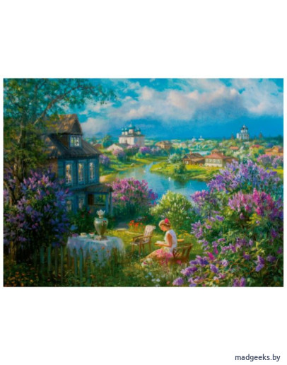 «Домик в сирени» — это картина-пазл из дерева, повторяющая произведение Владимира Жданова. На полотне спрятана тихая жизнь в домике среди сирени, где светло и просто жить. В душевном и красивом пейзаже скрыты образы детства и взросления, шалости и юности.