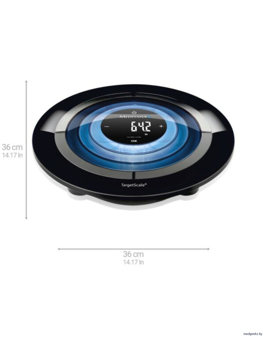 Medisana Target Scale 3 — это напольные весы ди анализотор тела. Устройство способно с высокой точностью определить массу тела, процентную долю костной ткани, мышечной массы и жидкости в организме, а также самостоятельно рассчитать Индекс массы тела.