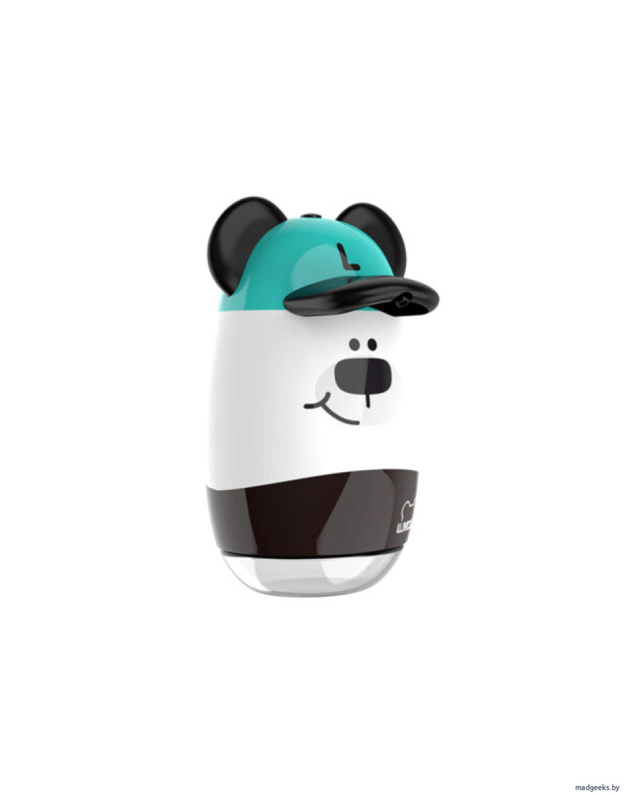 Дозатор сделан из высококачественного пластика. Необычная деталь дизайна — на верхней части корпуса находятся милые уши, а спереди кепка. Раскраска устройства напоминает медвежонка черно-белого цвета.