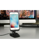 Поворотное крепление позволяет расположить смартфон в горизонтальном или вертикальном положении для комфортной работы с экраном смартфона, просмотром видео и прочего. Устанавливается смартфон на любой горизонтальной поверхности благодаря противоскользящему покрытию основания. Док-станция будет удачно смотреться в интерьере любого стиля как дома, так и в офисе.