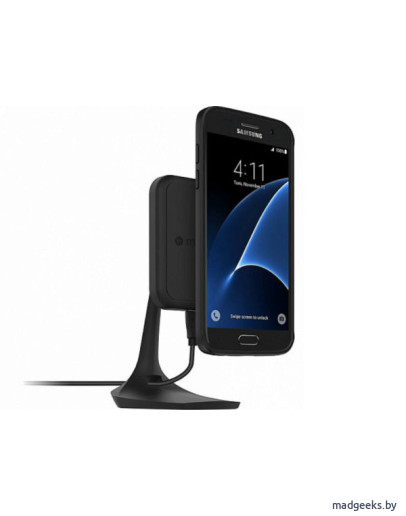 Портативная и компактная док-станция Mophie Charge Force Desk Mount позволяет быстро зарядить смартфон без использования проводов. Смартфон крепится на док-станции за счет магнитов, а единственный кабель USB можно спрятать под столом. Устройство работает только в паре с чехлами Mophie Juice Pack, которые продаются отдельно и в комплект поставки не входят. Аккуратный и строгий дизайн корпуса позволяет установить устройства как дома, так и на рабочем месте в офисе.