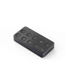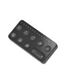 Touch BLOCK имеет прямоугольную форму и размер 95 х 20,5 х 48 мм, что идеально подходит к контроллерам Lightpad Block и Seaboard Block. Корпус блока изготовлен из матового пластика черного цвета. Сверху расположены все 9 кнопок с подсветкой, над ними ― 13 светодиодных индикаторов. На всех боковых гранях устройства есть коннекторы DNA, поэтому блок можно подключить к контроллерам любой стороной. Зарядного разъема здесь нет: Touch BLOCK заряжается через подключение к контроллеру.
