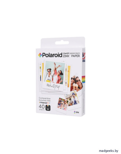 Фотобумага предназначена для камеры Polaroid POP. Печать фото производится за счет встроенного принтера. Технология печати не отличается от классического полароида – Zero Nero. Это бесчернильная печать, которая позволяет в один этап проявлять снимки. Бумага для полароида содержит специальные кристаллы, которые проявляются под воздействием специального нагревательного элемента в принтере.