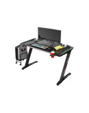 Стол имеет гладкую рабочую поверхность с покрытием в стиле карбон. Каркас выполнен в форме буквы Z. Габариты стола составляют 128,6 × 68,5 × 78,5 см.