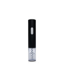 Штопор имеет цилиндрическую форму. Основной материал аксессуара – прочный пластик и нержавеющая сталь. На корпусе присутствуют две кнопки управления. Штопор визуально разделен на две неравные части, верхнюю черную и нижнюю прозрачную. Аксессуар сразу поставляется в подарочной коробке.