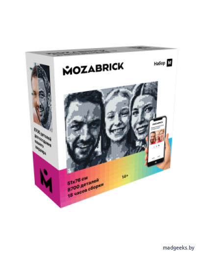 Mozabrick M — это необычный конструктор, который позволяет превратить любую фотографию в черно-белый пазл в стиле пиксель-арт. Вы сможете бесконечное количество раз создавать новые картины, украшать интерьер, каждый наслаждаясь процесс сборки.
