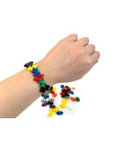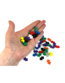 Конструктор состоит из 100 пластиковых деталей 10 цветов: синего, зеленого, красного, желтого, фиолетового, оранжевого, коричневого, серого, белого и черного. Детали одинакового размера: 2 х 1,2 сантиметра. Форма тоже одинаковая и немного напоминает детали пазла. Такой прием позволяет соединять элементы между собой любой стороной и использовать для одной фигурки неограниченное количество деталей. Конструктор поставляется в прозрачном пластиковом тубусе, в котором можно хранить детали после игры.