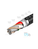 Длина кабеля составляет 90 сантиметров. Волокна и провода отличаются особой износостойкостью. Кабель способен выдержать множественные сгибания и долго прослужит пользователю.