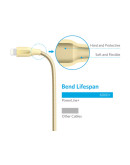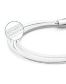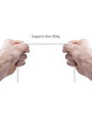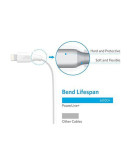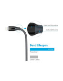 Anker PowerLine+ Lightning имеет длину 90 сантиметров, оптимальную для зарядки устройства на столе или тумбочке, либо для подключения его к компьютеру. На противоположных концах кабеля присутствуют два коннектора: USB и Lightning 8 pin. Коннекторы выполнены из долговечного алюминиевого сплава, устойчивого к окислению. Сердечник изготовлен из закаленного арамидного волокна. Кабель имеет двойную плетеную нейлоновую оплетку, которая не дает ему ломаться и перетираться на сгибах.