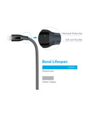 Несмотря на большую длину, PowerLine+ устойчив к натяжениям, спутываниям и заломам. Провод оснащен двойной оплеткой из прочной нейлоновой нити, благодаря которой выдерживает более 6000 циклов сгибаний и разгибаний.