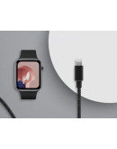 Кабель для зарядки и передачи данныхa. Имеет практичный дизайн с текстильной оплеткой. Штекеры кабеля выполнены из металла. С одной стороны имеется разъем USB-C, с другой — Lightning 8-pin.