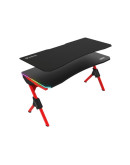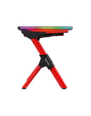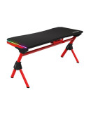 Стол Gamdias Deadlus M1 состоит всего из трех частей, поэтому его удобно собирать и разбирать. Столешница имеет специальные проемы для организации хранения проводов, чтобы они не свисали со стола и не лежали под ногами. Прочные стальные ножки и рама обеспечивают устойчивость на любом типе напольного покрытия. Столешница из МДФ способна выдержать нагрузку до 100 кг. По бокам стола расположена RGB-подсветка с 15 режимами работы.
