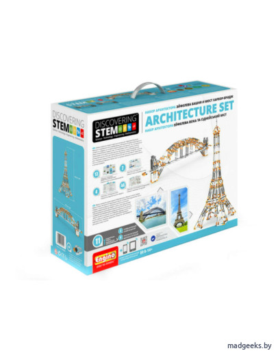 DISCOVERING STEM Набор архитектора ーэто конструктор, разработанный группой квалифицированных педагогов и ученых для детей от 8 лет. Он включает в себя необходимые детали для постройки парижской Эйфелевой башни и сиднейского моста Харбор-Бридж. Набор архитектора позволяет ребенку не только интересно провести время, но и в увлекательной форме познакомиться с основами архитектуры и моделирования.