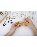 Чтобы понять устройство конструктора и принцип его работы, можно воспользоваться буклетом из комплекта. В нём подробно описано, как собрать 3 разных модели INFOBIT. Комфорт сборки обеспечивает специальный инструмент 5-в-1. Он поможет легко привинтить или снять компоненты, поэтому ребёнку не нужны отвёртки или ключи из ящика инструментов папы.
