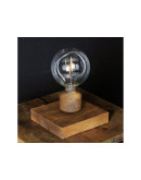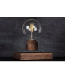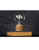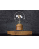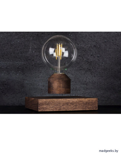 - Основание, изготовленное из массива дуба, выполнено в форме параллелепипеда со сторонами 15 х15 см. В подставке спрятана электромагнитная часть, которая взаимодействует с магнитами в основании лампочки.