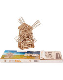 Механическая мельница обладает полуоткрытой конструкцией. Такой подход позволяет видеть работу механизма. По всему корпусу в Мельнице размещаются гномики-работники, что придает модели ещё большую оригинальность. Как и все модели Wood Trick, Механическая мельница изготовлена из березовой фанеры, этот материал экологически чистый и безопасный. Высота собранной Мельницы ― почти 40 сантиметров, в её вес составляет 1 килограмм.