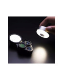 RevolCam 3-в-1 представляет собой удобный инструмент для фотосъемки который закрепляется на смартфоне или планшете. Гаджет имеет необычную форму и дизайн: нижняя часть устройства представляет собой клипсу с треугольной площадкой, на которой расположены сразу три объектива. Чтобы сменить один объектив на другой, достаточно повернуть площадку. Над объективами расположена LED-подсветка, яркость которой регулируется. Подсветка съемная и за ней находится зеркало, которое позволяет делать селфи на заднюю камеру смартфона. Благодаря компактному размеру RevolCam 3-в-1 можно всегда держать под рукой, положив его в карман или сумочку. Для защиты объективов во время транспортировки гаджет комплектуется чехлом.