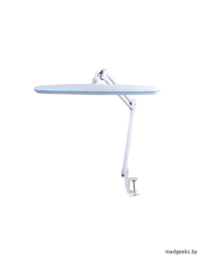 Модель получила регулируемую металлическую ножку. Она поднимается на высоту 92 см. Такая возможность позволит лучше управлять освещением. К ножке крепится осветительная панель. На площадке размерами 58 x 6,2 см разместились светодиоды. Здесь же находится многофункциональный контактный диммер. Для крепления к поверхности используется струбцина. Она надёжно зафиксирует вашу лампу, не даст ей сдвинуться с места или упасть.