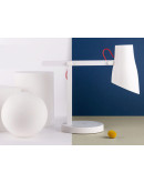 LED L1 выполнена в футуристичном дизайне. Корпус изготовлен из пластика белого цвета, торшер лампы удлиненный, со скошенным краем. Высота и наклон регулируются. Основание круглое и оснащено сенсорами для переключения режимов, а также встроенной беспроводной зарядкой.