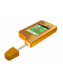 Тестер получил корпус размерами 12,2 x 5,2 x 1,4 мм. Благодаря этому его удобно брать с собой и транспортировать в кармане, сумке или рюкзаке. Пластиковый корпус защитит внутренние элементы от ударов и падений.На фронтальной стороне находится сенсорный экран. На нём отображается основная информация, с его помощью вы будете управлять параметрами тестера. В заднюю крышку встроен магнит. Это позволит прикрепить девайс на двери холодильника, чтобы датчик всегда был под рукой. Двойной щуп из нержавеющей стали находится на нижней торце под защитным колпачком. Сверху расположена кнопка включения, справа – вход для зарядки.