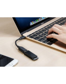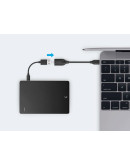 Anker PowerLine Adapter представляет собой миниатюрный адаптер размером 6,8 x 1,8 x 1 см, который подключается к ноутбукам и смартфонам через порт USB-C. Длина кабеля составляет всего 8 см, поэтому аксессуар не составляет труда взять с собой в дорогу, поездку и на учебу. Корпус переходника выполнен из прочного пластика, а коннектор изготовлен из алюминия, что обеспечивает надежность подключения.