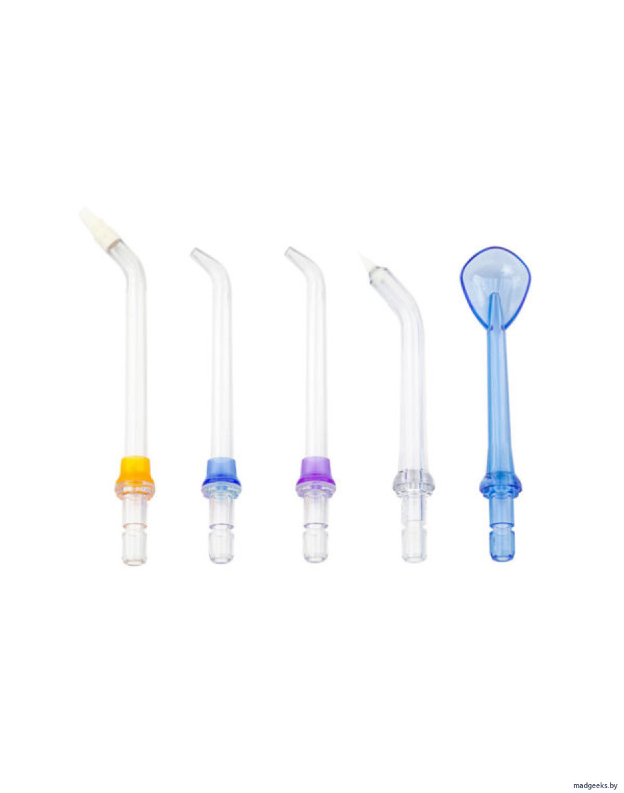 Механизм ирригатора предусматривает подачу воды с определенной частотой пульсаций: в модели RL 450 этот показатель доходит до 1700 в минуту, в зависимости от выбранного режима. Всего в устройстве 5 режимов, между которыми легко переключаться кнопками на корпусе. Для наиболее эффективной чистки насадка ирригатора вращаются на 360°.