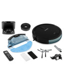Пылесос поддерживает сухую и полноценную влажную уборку. Одного заряда устройства хватает на 200 квадратных метров (до 180 минут уборки). Робот не боится и небольших препятствий — он с легкостью преодолеет ограничение до 15 мм. Скорость передвижения робота составляет 24 см/с. Полная зарядка устройства происходит за 250 минут.