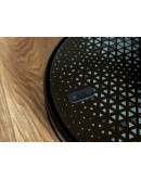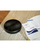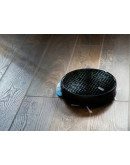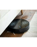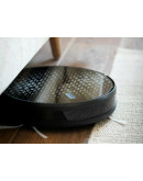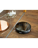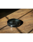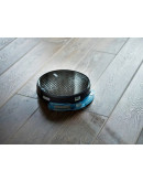 Робот-пылесос PANDA EVO получил современный дизайн: корпус черного цвета имеет крышку с множеством треугольных граней, где каждая грань отражает свет под разным углом, создавая игру бликов. На крышке расположены кнопка включения и индикатор работы.