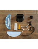 В нижней части корпуса расположены боковые щетки и крепления для салфетки из микрофибры. Эти салфетки необходимы для влажной уборки. Все щеточки пылесоса тщательно собирают пыль и грязь, а для их очистки от волос и шерсти в комплект поставки входит специальный нож.