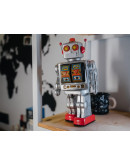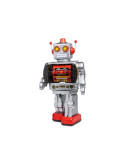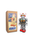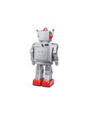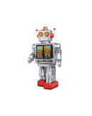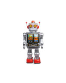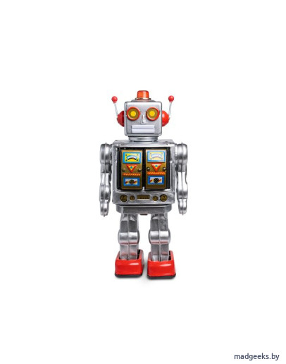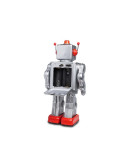 Робот в ретростиле повторяет оригинальную модель, выходившую в 1950-х годах в США. Работает на батарейках, сами элементы питания в комплект не входят. При включении он будет шагать по ровной поверхности и двигать корпусом. Модель раскрашена вручную.