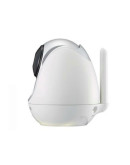 Видеоняня изготовлена из качественных материалов, не представляющих опасности для здоровья ребенка. Дизайн камеры минималистичный и простой, поэтому она подходит для установки в разнообразных по стилю и оформлению детских комнатах. Корпус имеет овальную форму, сужающуюся кверху. В центре устройства находится HD камера с цифровым зумом и разрешением 1280х720 р. За счет надежного плоского основания камера устойчиво держится на любой горизонтальной поверхности, а специальное крепление позволяет повесить камеру на стене.
