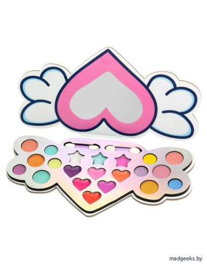 Палетка для макияжа Super Girl в виде сердечка покоряет с первого взгляда. В ней есть все необходимое для макияжа: 12 сияющих оттенков теней для век, 6 бальзамов для губ, 3 кремовых оттенка теней, а также 2 аппликатора для нанесения косметических средств. В палетку встроено зеркальце.