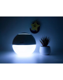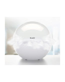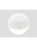 Устройство имеет белоснежный корпус, выполненный из пластика с черным логотипом на одной из сторон. Внешне гаджет имеет форму шара с отверстиями, через которые идет увлажнение. Объем контейнера для воды — 1 литр.