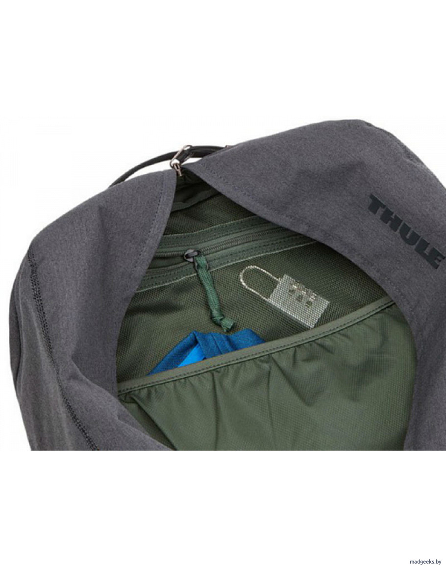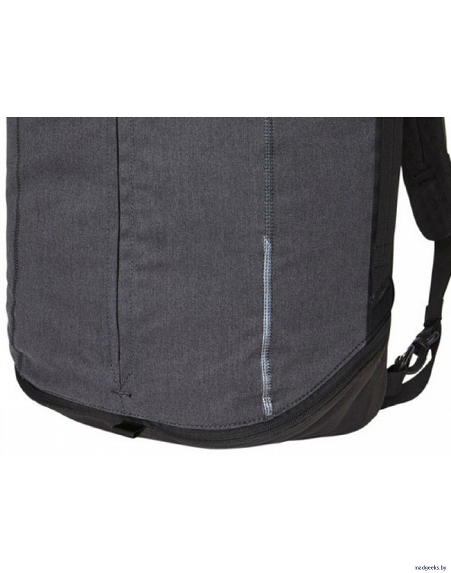При первом взгляде кажется, что основное отделение всего одно, спереди на вертикальной молнии. Однако, по верхнему краю спинки идет замок для доступа в отделение для ноутбука и планшета. Он неприметен с первого взгляда, поэтому владелец может быть уверен за сохранность своих вещей. Отдельное внимание дизайнеры уделили мелочам: быстрый доступ к содержимому предоставляют надежные молнии YKK, а язычок молнии отделан фурнитурой марки Duraflex с фирменным логотипом Thule.