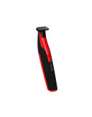 Гаджет выполнен из качественного ABS-пластика и имеет черный дизайн с алыми элементами. На корпусе устройства также располагается логотип компании. Насадки устройства съемные. Лезвия машинки выполнены из прочной и долговечной нержавеющей стали высокого качества.