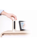 Устройство представляет собой компактный бронзовый цилиндр, в который врезана чёрная пластиковая панель с камерой. Корпус выполнен из анодированного алюминия, он не боится потёртостей и сколов, а пластиковая подставка в его основании предупреждает скольжение. Все разъёмы разместились сзади на небольшой врезке из аналогичного белого пластика.