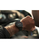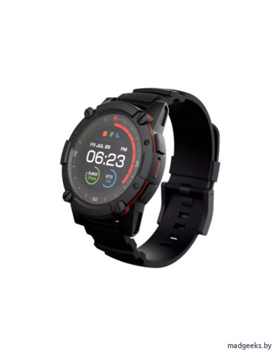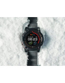 Часы обладают ярко выраженным спортивным дизайном: корпус черного цвета сочетается с также черным ремешком,выполненным из силикона. Вместо классического циферблата ― ЖК-дисплей. На нем отображается время, а также данные о физической активности пользователя. Диагональ дисплея ― 1,2” (30,48 мм). От повреждений экран защищен сапфировым стеклом.